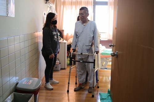 圖說:黃先生在復健科團隊的協助下,積極復健,希望能早日靠自己的力量走路。