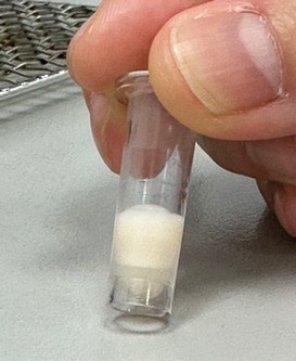 右圖:陳小妹的血液經離心後,上層浮著厚厚的油脂;圖中白色處即分離出的油脂層。
