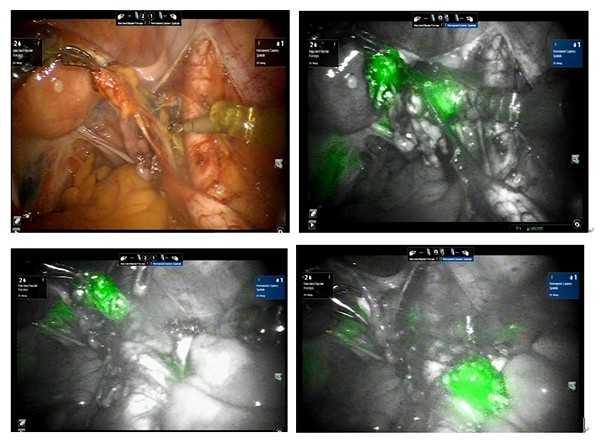 圖說:達文西螢光系統導引下可以精準地切除所有可疑淋巴結,提高正確的診斷及癌症分期。