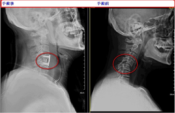在確定原因後,吳聖文醫師隨即為彭先生安排手術,進行頸椎牽引復位。吳醫師膽大心細地徒手將原來脫位頸椎復後位,再進行前位減壓固定融合手術,外觀傷口僅三公分。在「物歸原處」後,彭先生的頸椎不再被壓迫,肩頸痠痛的情況完全改善,而且也沒有麻木及神經學損傷的情形,術後三天就出院回家了。