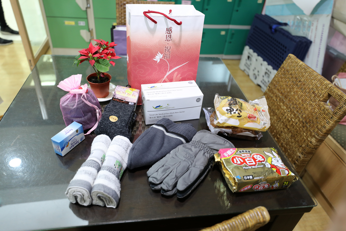 除了禦寒物資之外,花蓮慈院團隊也帶來麵包以及口罩等物資。顏惠美師姐表示,物資都是在白天詢問過街友本人之後才準備的,就是希望能提供給他們最急需的物資,現在疫情關係,例如口罩是大家的必需物品,大部分的人都可以輕易買到口罩,但是很少有人想到,街友也很需要!