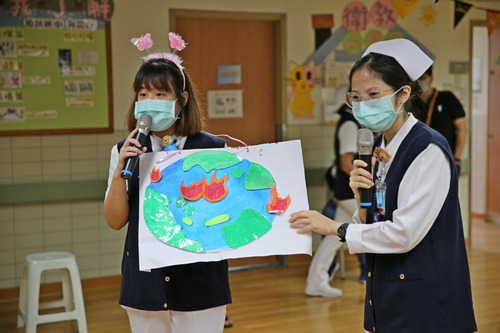 「為什麼要吃蔬菜?我不要吃」、「你知道多吃蔬菜還可以救地球嗎」活潑話劇演出,還有帶動唱跳,讓孩子們個個看得目不轉睛,台下一起同樂。小兒部兒童社區醫療科主任暨兒科病房主任陳明群指出,目前全球暖化嚴重,英國物理學家艾倫.卡佛特(Alan Calverd)於《物理世界》(Physics World)科學期刊中發表一篇名為〈解決京都議題的根本之道〉的文章,提出一個解決全球暖化問題的更簡單的方法,那就是停止葷食,且茹素好處,能避免攝取動物性飽和脂肪酸,而蔬菜水果中也富含膳食纖維,有助血壓、血脂、體重的控制。陳明群主任說,如果能從小建立起正確的營養飲食觀念,就有機會能避免之後出現包含營養過剩在內的營養不均衡問題,可以讓孩子們的成長發育更加健康。