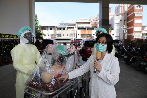 圖說:賴佩芳醫師提到,研發「防疫隔離罩」過程印象最深的是團隊合作的默契,包括經花蓮慈院訓練出來的高級救護技術員(EMT-P)的試用與與工務組同仁協助開發。