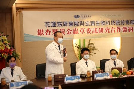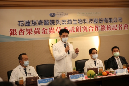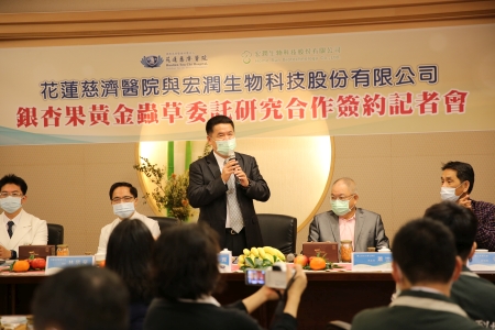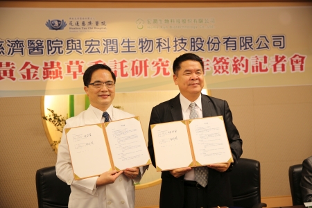 為了提供病人更進一步的治療選擇,十一月十七日上午,宏潤生物科技股份有限公司與花蓮慈濟醫院簽訂合作備忘錄,約定進行臨床產學合作研究計畫。結合宏潤生技專研活性多醣體及微生物發酵的專利技術,以及花蓮慈院的臨床醫療與創新研發經驗,針對「銀杏果黃金蟲草子實體」的應用進行研究。