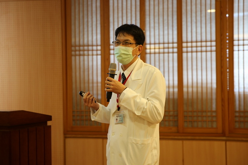 右圖:林純吉副主任則是介紹花蓮慈院除了擁有負責預防工作的勞工健康服務中心外,還有負責疾病診斷治療的職業傷病防治中心及末段復健的工作強化中心,三位一體來守護勞工健康。