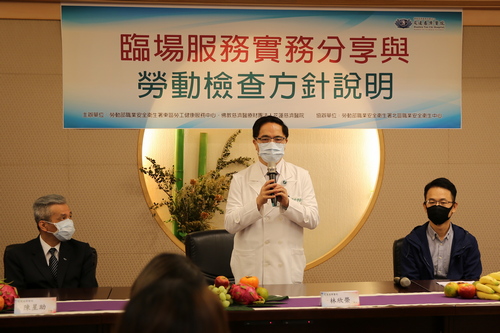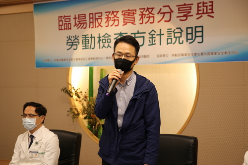 首先,由職業醫學科主任劉鴻文介紹「東區勞工健康服務中心」臨場服務,劉鴻文主任指出,花蓮慈院在2021年承辦勞動部「東區勞工健康服務中心」,提供東部地區勞工健康服務、企業臨場健康服務輔導及訪查等服務,其中臨場服務,包含異常工作負荷促發疾病預防、人因性危害預防、工作場所母性健康保護及執行勤務身心遭受不法侵害預防等計畫的執行重點。