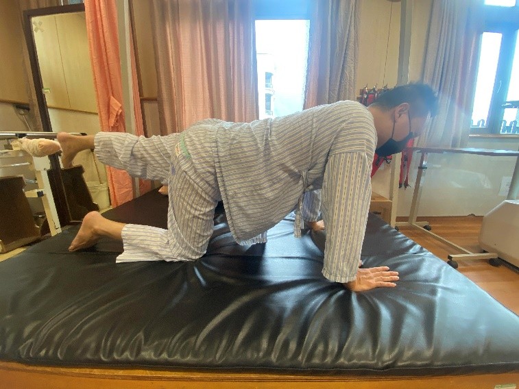 蔡先生雙腳的各肌群都很有力,今年七月手術後,經由脊髓電刺激器植入改善症狀,加上物理治療老師個人化的協助復健,蔡先生肌肉張力大為降低,大大改善協調性。(上下圖)