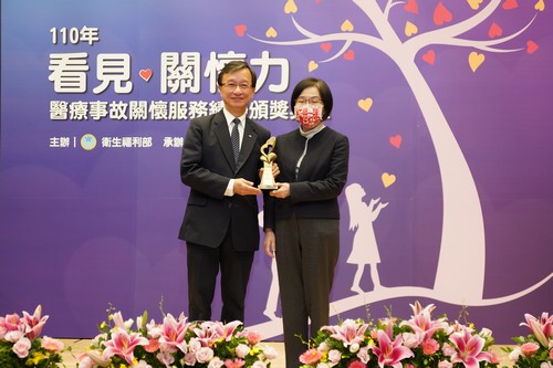 衛福部今年首度頒發醫療事故關懷服務計畫績優獎,於24日表揚典禮中,花蓮慈院與台灣醫療改革基金會、陳忠純紀念促進醫病關係教育公益信託推廣會、義大醫院等獲頒機構團體組「特優機構」,同時也是唯一獲頒特優獎的醫學中心。