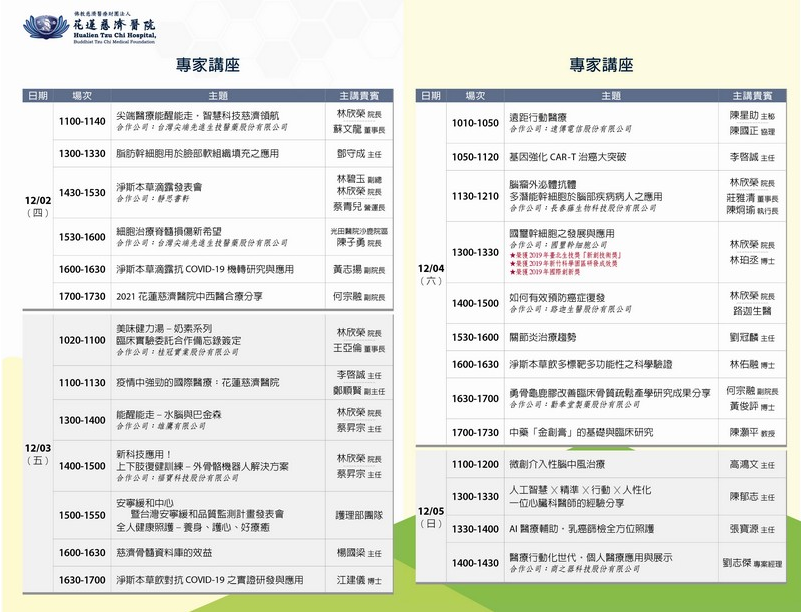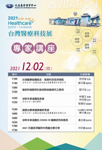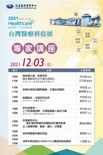 圖說:在2021台灣醫療科技展,花蓮慈院四天展期將舉辦二十六場專家講座。