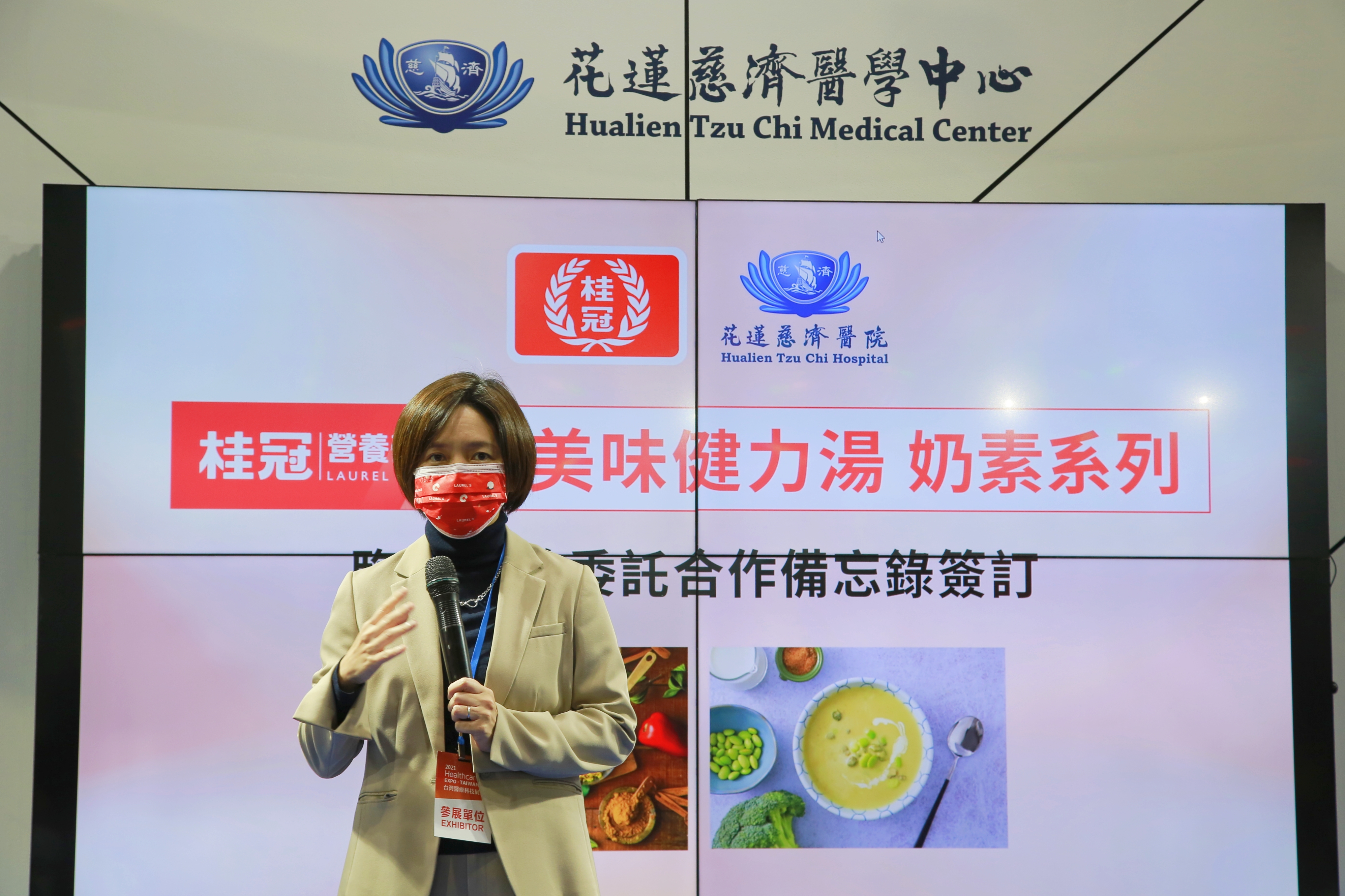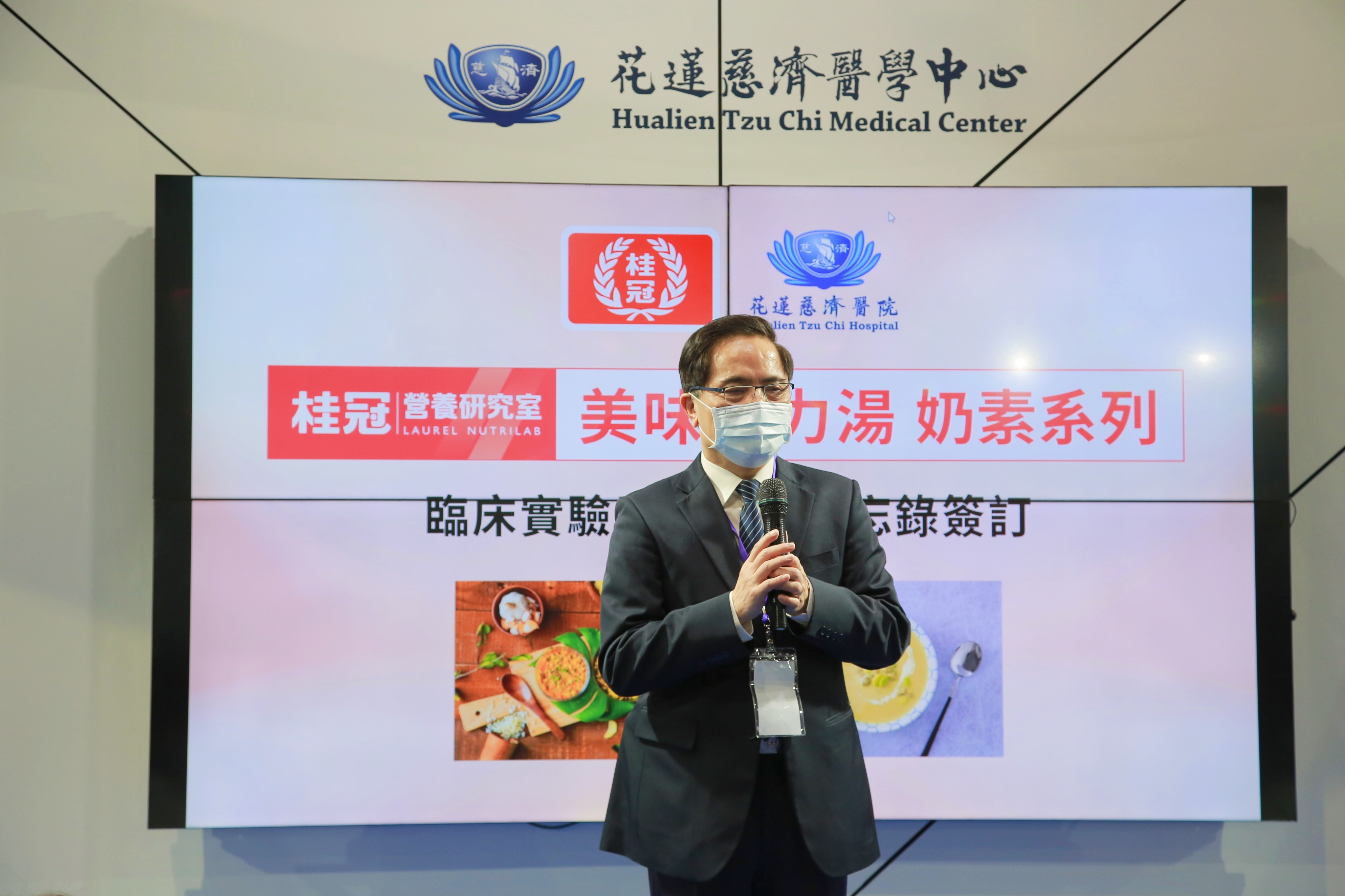 花蓮慈濟醫院與桂冠實業十二月三日於台灣醫療科技展簽定合作意向書,結合桂冠實業旗下品牌桂冠營養研究室研發的奶素「美味健力湯」,由花蓮慈院營養科臨床試驗;期許透過飲用美味營養的湯品,幫助有營養風險的長者,能夠食得營養又安心。