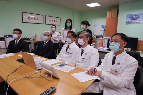 右圖:花蓮慈院林欣榮院長(右三)表示,透過雲端論壇,分享臺灣中醫藥防疫經驗,除了進一步凝聚中醫藥與國際交流合作的共識,也期待透過天然中草藥的應用,可以為罹患新冠肺炎的病人,帶來更多的幫助。