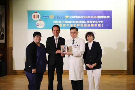 圖:花蓮扶輪社2020-2021年度全球獎助金計畫,獲得臺灣友社3482地區台北北門扶輪社與宜蘭扶輪社支持,國外日本2630地區鳥羽扶輪社,橫濱西扶輪社,泰國3350地區與韓國3750地區等也共同捐助給花蓮慈濟醫院骨髓幹細胞中心。