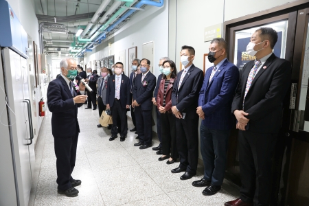 右圖:骨髓幹細胞中心主任楊國梁為扶輪社的貴賓介紹骨髓幹細胞中心的設備與運作方式。