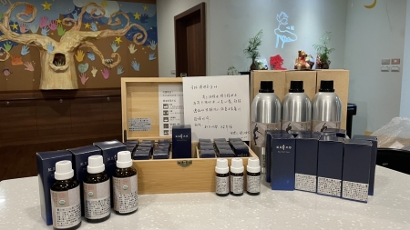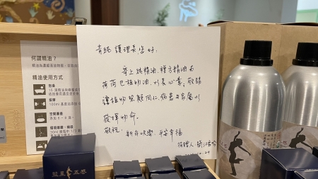 圖:江阿嬤的外孫女知道心蓮病房安寧療護團隊有為末期病人進行芳香療法,特地捐贈了一批精油給團隊使用。