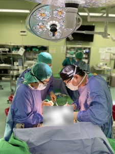圖:感謝器官捐贈者的愛心,花蓮慈院器官移植中心主任陳言丞(右)與一般外科主治醫師何靜淳(左))將器官捐贈者的器官移植到受贈者體內。