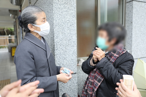 左圖:街友林阿姨捐出所得,發願助人。