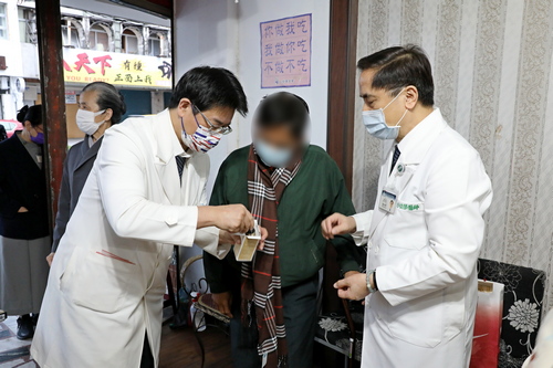 左圖:林欣榮院長為街友圍上圍巾。
