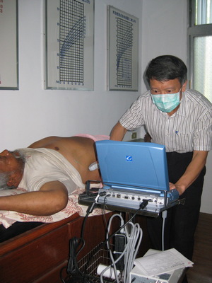 右圖:花蓮門諾醫院胃腸內科主任鄭穆良,在花蓮縣卓溪幫民眾作肝炎追蹤。