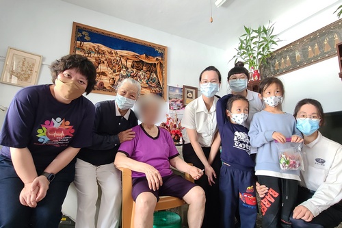 右圖:社工師與醫療團隊前往家訪往診,探望無法出來就醫的法親或是鄉親長者們。