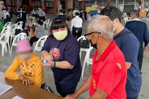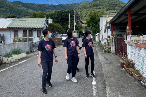 圖說:社工師黃靖玲(右圖左二)在這次義診負責陪伴看診鄉親外,也跟團隊主動出擊,走進社區詢問有無鄉親需要醫療服務。