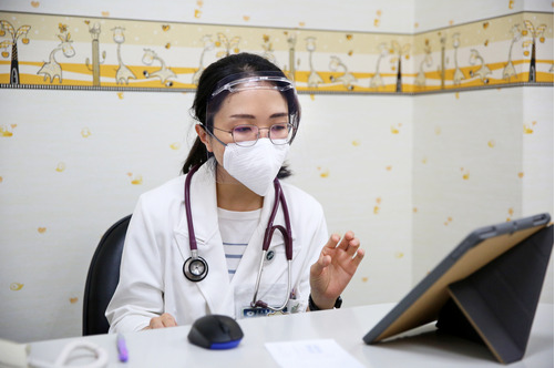 「您好,我是花蓮慈院耳鼻喉科醫師陳培榕,請問哪裡不舒服?」花蓮慈濟醫院從18日起承接花蓮縣加強型防疫旅館後,同時啟動視訊門診服務,幫助身體不適的確診病人就醫。一位隔離中的孕婦,因為喉嚨痛、流鼻水不止,幸有視訊門診,在聽完陳培榕副院長的衛教醫矚之後,緩解她內心的煎熬。