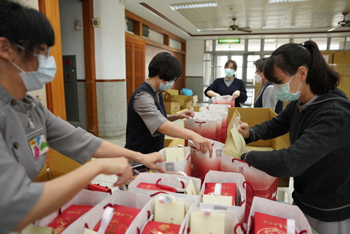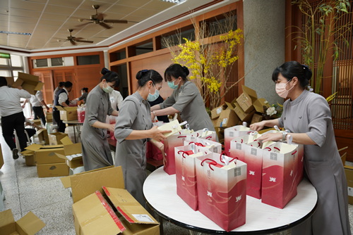 圖說:這一千份平安祝福包是由靜思精舍提供淨斯本草飲、淨斯資糧及靜思書籍等物資,花蓮慈院於二十一日下午打包完成。