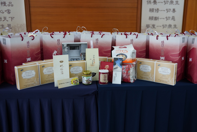 這一千份平安祝福包是由靜思精舍提供淨斯本草飲、淨斯資糧及靜思書籍等物資,花蓮慈院於二十一日下午打包完成。贈送儀式在同心圓舉行,包括慈濟基金會副執行長劉效成、花蓮慈濟醫院院長林欣榮、副院長羅慶徽、主任秘書陳星助、醫務秘書李毅、護理部主任鍾惠君,以及花蓮縣衛生局局長朱家祥、加強型防疫旅館經理林于凱等人與會。