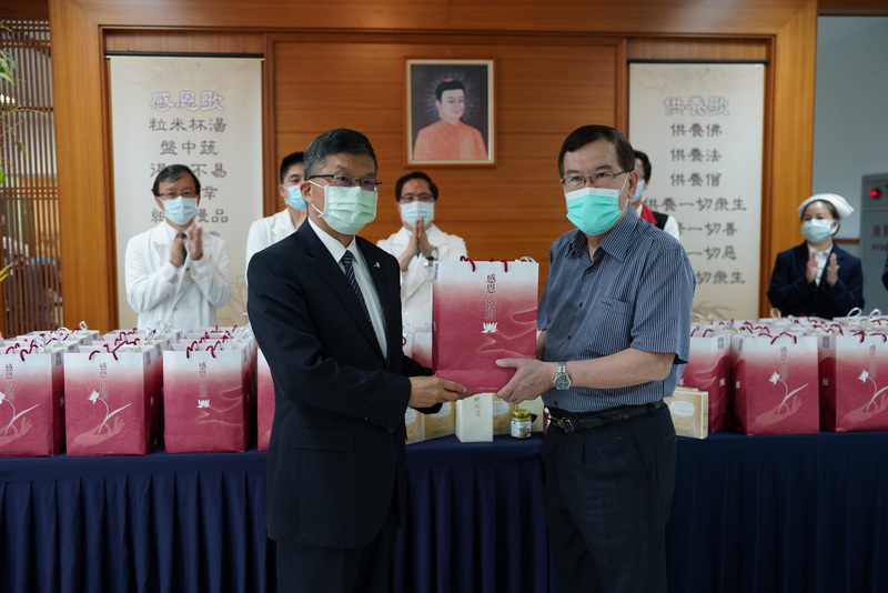 林欣榮院長說, 證嚴法師的平安祝福包,「結合花蓮慈院醫療照護與 上人參與研發的淨斯本草飲,送給住防疫旅館的居隔鄉親,上人一直叮嚀他,醫院、社區要保護好,」目前的花蓮慈濟醫學中心的就診環境非常乾淨。