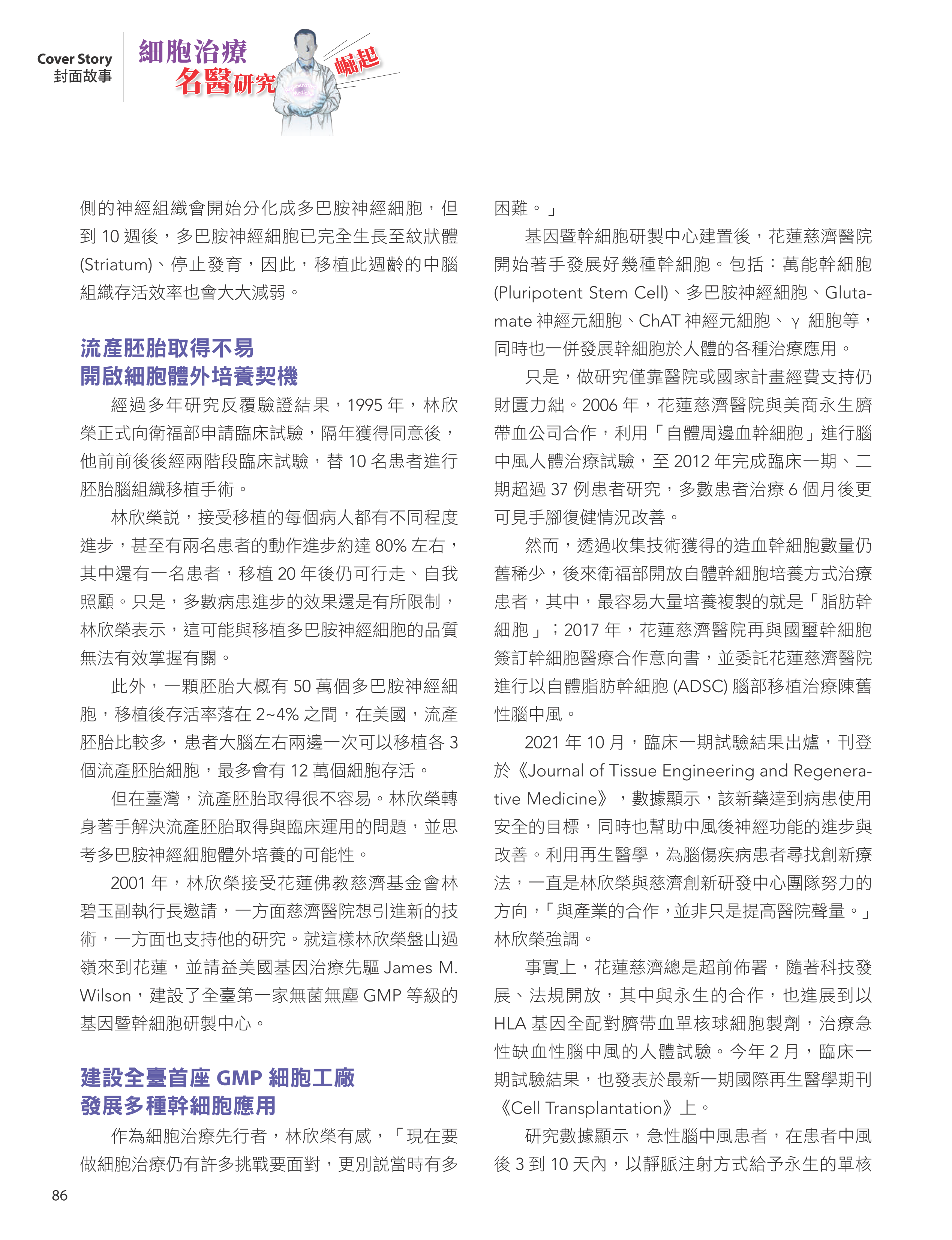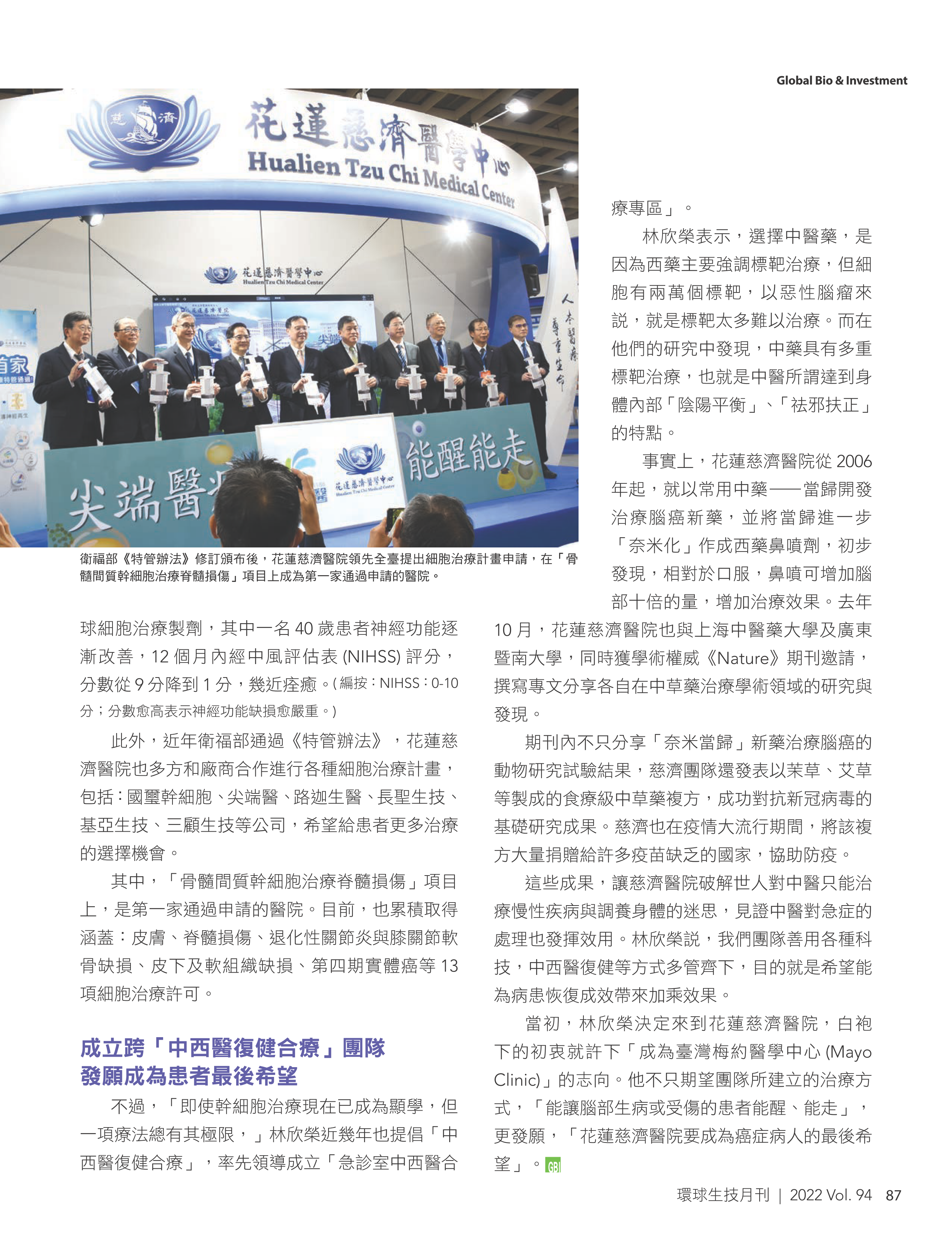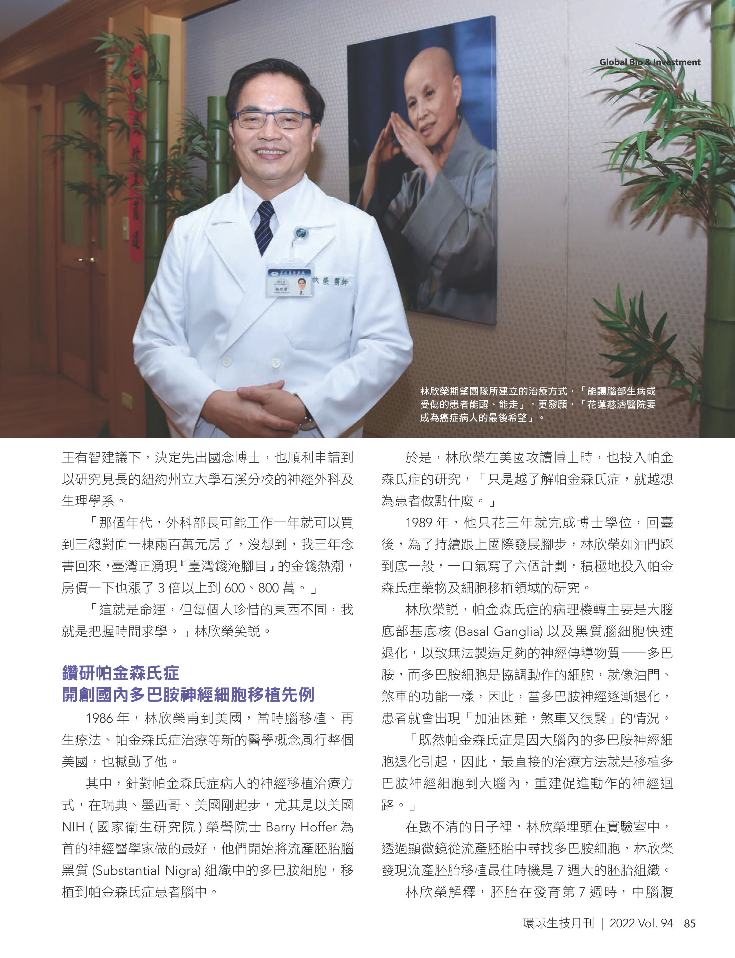 資料來源:〈環球生技〉花慈林欣榮細胞治療縱橫「中西醫復健合療」台灣胚胎幹細胞移植帕金森氏症患者第一人