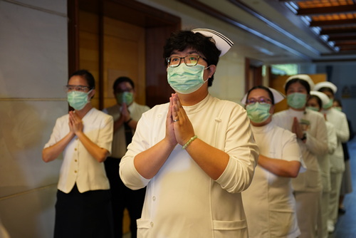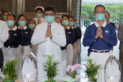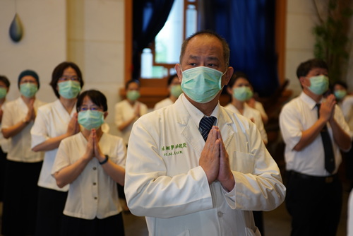 一起出席參與花蓮靜思堂浴佛的花蓮慈院麻醉部主任陸翔寧表示,疫情從四月開始越來約嚴重,每天必要、緊急手術都會遇到確診病患,每次手術都要八到十個醫護同仁,穿隔離衣待在負壓隔離手術房裏,呼吸、視線都受影響,還要手術、麻醉,醫護同仁與其他相關工作人員都已經盡心盡力。