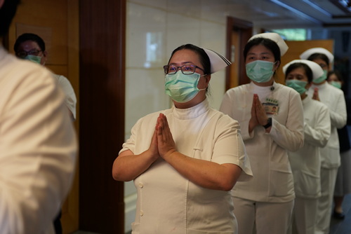 另一位在疫情期間投入防疫第一線的花慈重症專責加護病房督導李彥錚說,自己也曾遭遇居家隔離,參與讓身心靈平靜的浴佛典禮,算是給自己一個體會與大禮物,但也祈求疫情趕快消弭,大家回歸不用戴口罩的自由生活。