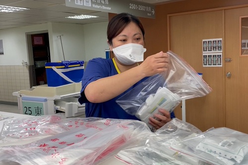 「每一個護理師走出病房時,全身都是濕的,一天都要換好幾套的工作服。」另一位,正在忙碌分裝每床病人藥物的護理佐理員呂碧真表示,因為看到護理師們這麼辛苦,她真的很想進去幫忙,剛好醫院在招募照護輔佐員,所以她就自告奮勇跟單位說:「好,我願意進去的!」要與團隊一起度過這段艱難的期間。