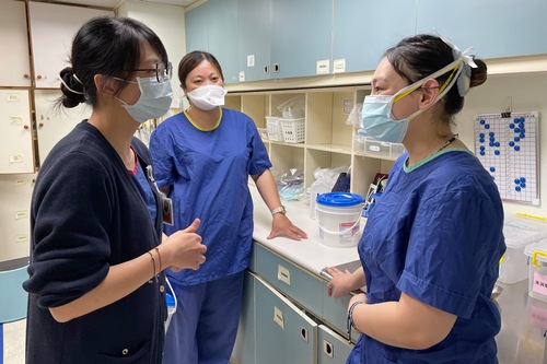 「政府提供額外津貼,吸引人力進到專責病房作輔助照護,當然能紓解同仁的照護壓力,這是件好事。」護理部主任鍾惠君指出,工作分配上,護理師與護理佐理員可以兩兩一組去做更多的照護工作,不僅縮短他們在專責病房裡的時間,也可以專心去做護理評估,這對於病人照護的安全性及品質,都能得到很好的提升。