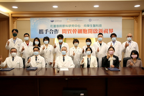 隨著3C產品的普及,因為用眼過度導致視網膜退化出現年齡下降的趨勢。花蓮慈濟醫院眼科研究中心承接科技部「前瞻技術產學合作計畫」,與向榮生醫科技股份有限公司攜手合作,共同發展應用異體間質幹細胞為基礎的視網膜退化疾病療法。六月二十三日上午十點,由慈濟醫療財團法人執行長林俊龍、花蓮慈院院長林欣榮與眼科研究中心主任蔡榮坤帶領團隊,與向榮生技董事長蔡意文簽下合作備忘錄。