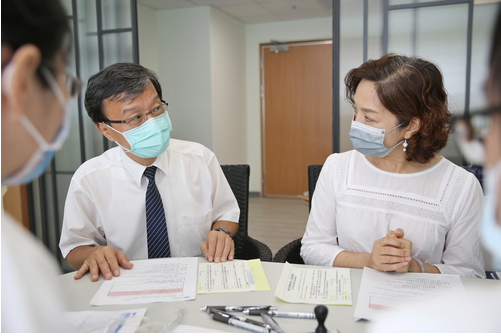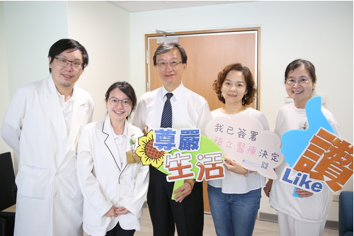 另一對相約簽署的則是復健醫學部主任梁忠詔夫妻檔,梁忠詔主任說,身為復建科醫師,也有在做身心障礙鑑定,而身心障礙證明有效期限最長為五年,近期到安養院或家訪做鑑定時,遇上了五年前非常急重症的病人如今還是臥躺在床上,真的是很難過也很不捨;另外,他的恩師臺灣復健醫學之父連倚南教授以及好友解剖病理部主任許永祥教授,相繼罹癌往生,這兩個例子都促使他和妻子下定決心簽署預立醫療決定。