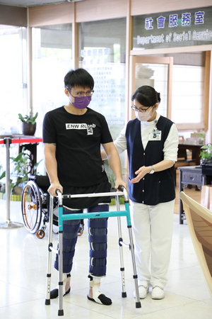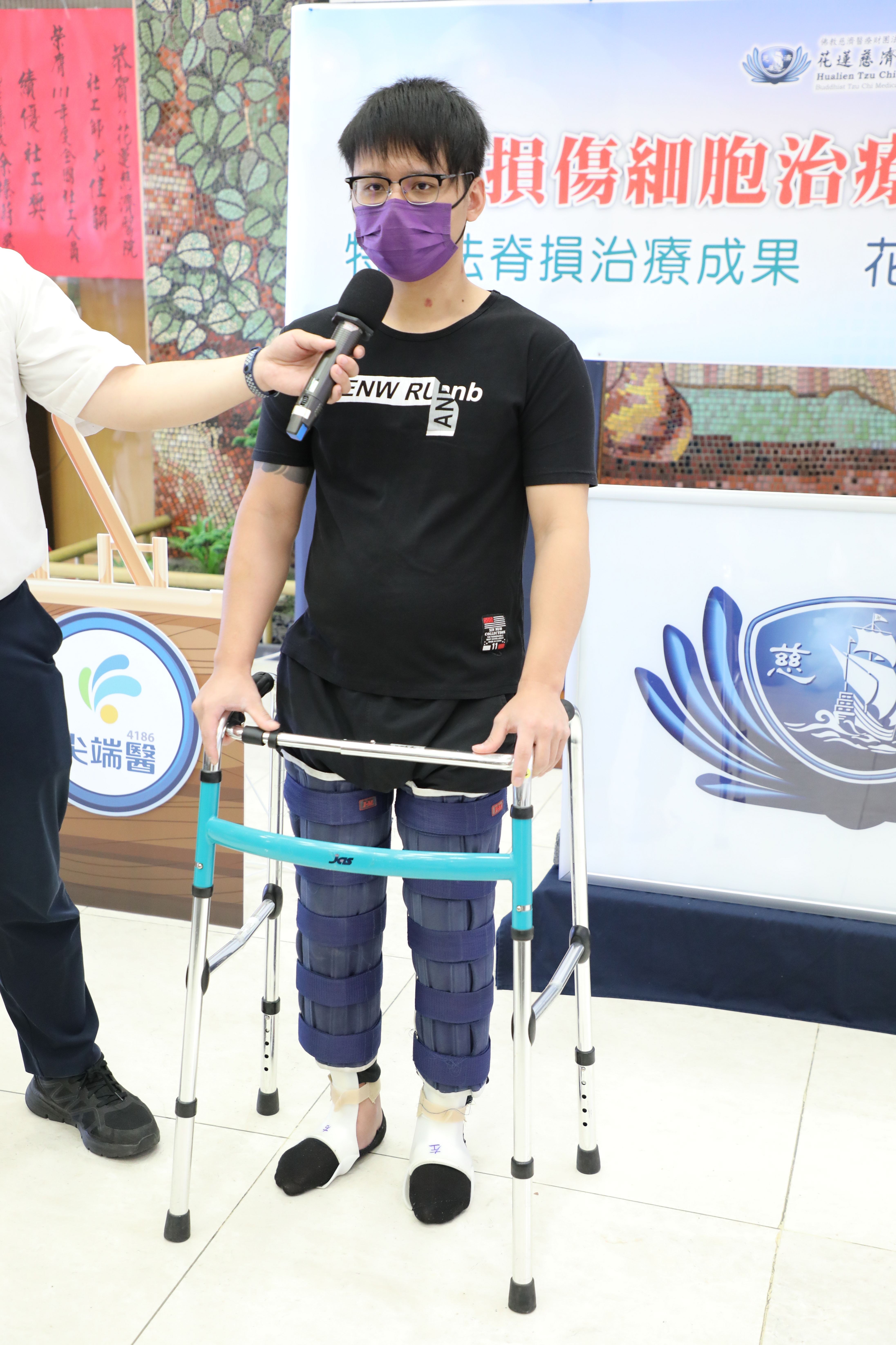 拿著助行器,緩緩一步步往前走,他是花蓮慈濟醫院與尖端醫合作自體骨髓間質幹細胞治療脊髓損傷申請計畫的第一例簡先生,也是臺灣第一位脊髓損傷超過五年,經細胞治療後還能重新站起的病友。今年26歲的簡先生其實在八個月以前,還是位下半身沒有知覺的脊髓損傷病友,在2021年11月完成自體骨髓間質幹細胞回輸手術及積極復健後,原本無知覺的下半身,已慢慢找回感覺,簡先生在8月9日分享他的「輪生逆轉勝」。(諮詢專線:03-8561825#18939。)