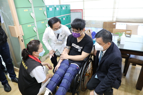 「發現他有想上廁所的感覺,而且他可以控制自己什麼時候上廁所。」復健路上,一路陪伴的簡媽媽開心分享,手術很成功,不只兒子的排泄系統有改善,他還可以坐在輪椅上,單腳踢地讓輪椅往前進,不是只有一腳能做到,而是雙腳都可以!從六年前受傷到現在,他能找回一點感覺,真的很高興,也很感恩醫療團隊的治療與協助,每個人都很用心來幫助他,他自己也很努力,希望他可以加加油,再撐一下,「我們就可以站起來走了!」