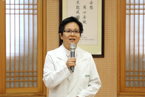 右圖:台灣腎臟醫學會學術研究委員會主委唐德成向所有研究者表示高度的敬佩,也感恩花蓮慈院承接會議的舉行,讓活動順利圓滿。