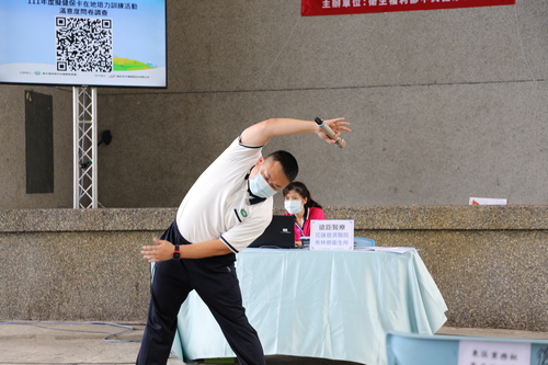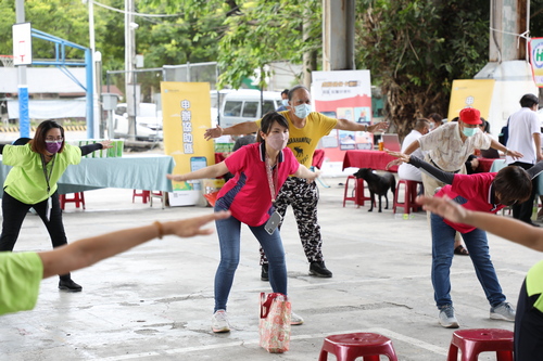 圖說(上、下):慈濟科技大學長期照護研究所王錠堯老師,當場帶領民眾做體適能運動。