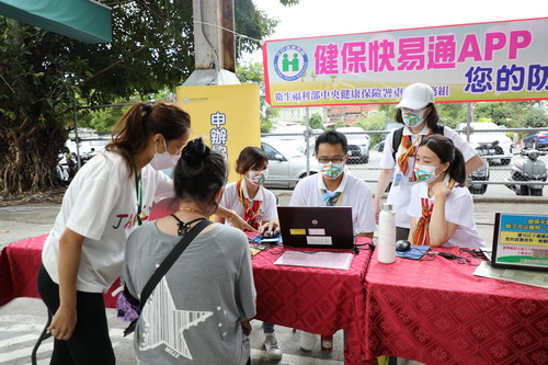 圖說:健保署人員親自教導民眾下載健保快易通APP、申請虛擬健保卡。