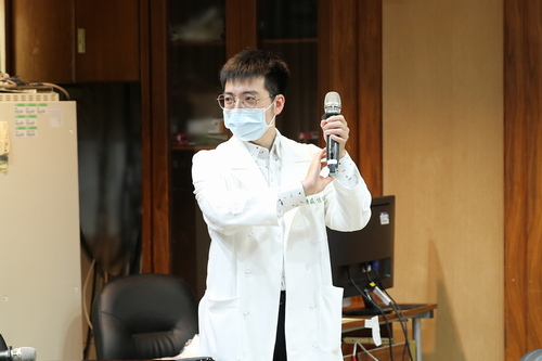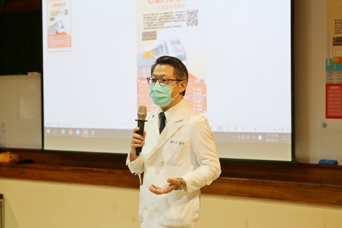 右圖:心電生理檢查室主任蔡文欽分享目前心房顫動的治療方式,包含藥物治療及手術治療。
