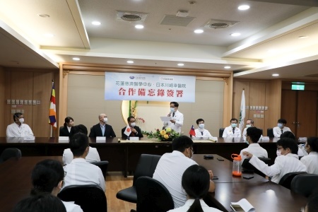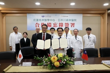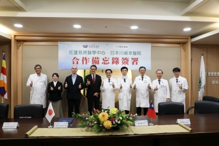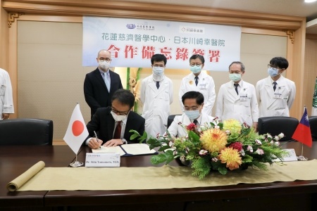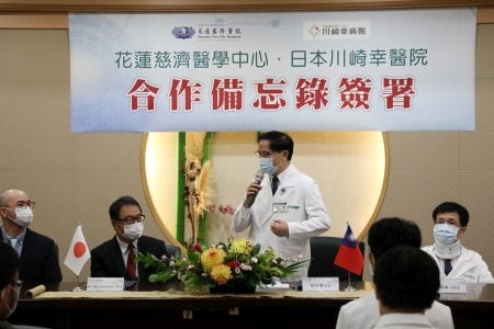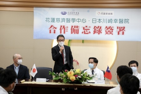 為了提升醫療水準,促進國際醫學交流,九月三十日上午,花蓮慈濟醫院外科部特地邀請了日本川崎幸病院(醫院)院長Dr. Shin Yamamoto(山本晉)、大動脈外科科長Dr. Susumu Oshima(大島晉)、大動脈外科住院醫師Dr. Mayu Kyono三位醫師,在花蓮慈院進行專題演講及座談。更重要的是在現場,由花蓮慈院院長林欣榮與川崎幸病院院長山本晉,代表雙方簽下合作備忘錄,約定在臨床經驗與醫學教學領域,進行更進一步的交流。