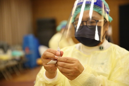 公告從早上8點半開始施打,但是現場不到8點就出現登記民眾。花蓮慈院醫事室副主任張菁育說,為了紓解預計會造成的人流,安排65歲以上的長者集中施打,動線上人潮多時,有三位醫師為長者進行評估、四位護理師同時施打,來避免他們久候,而行動不便坐輪椅前來的長者,則是貼心安排醫師、護理師到等候區為長輩問診及接種。