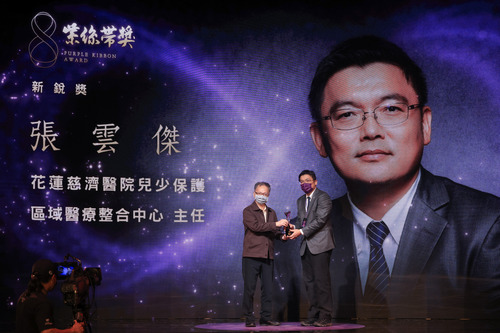 花蓮慈濟醫院兒少保護區域醫療整合中心主任張雲傑帶著「菩薩心、爸爸心、兒科專業」投入兒少保護醫療工作,三年來與社政、教育、警政、司法合作守護東臺灣兒童與少年的安全與健康,更創設親職諮詢,讓兒少保護工作延伸至學校、社區,獲得臺灣保護服務工作最高榮譽「紫絲帶獎—新銳獎」肯定。