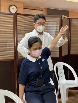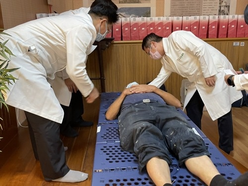推拿、針灸、艾灸、拔罐等治療方式對症使用,每一個療程完成後,馬上就可以在師兄師姊的臉上看到笑容。但因為義診時間有限。王健豪副主任建議,留守當地的師兄師姊可以利用玉里慈院的中醫及時治療,若自花蓮市南下的志工可以返家後再看中醫,最重要是就是有傷千萬不要拖。