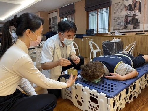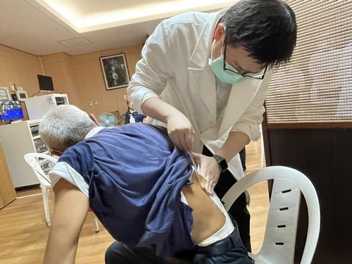 王健豪副主任指出,支援修繕的慈濟志工多已六、七十歲,除了陳年舊疾,主要還是連日施工過度勞累,肌肉痠痛、腰痠背痛、肩膀僵硬,甚至影響睡眠及排便,而這次的義診主要項目是中醫針傷科,每位醫師在問診結束後,隨即針對志工或者民眾不舒服的症狀、位置進行治療;大愛感恩科技的福慧床也派上用場充當治療床,義診過程十分順利。