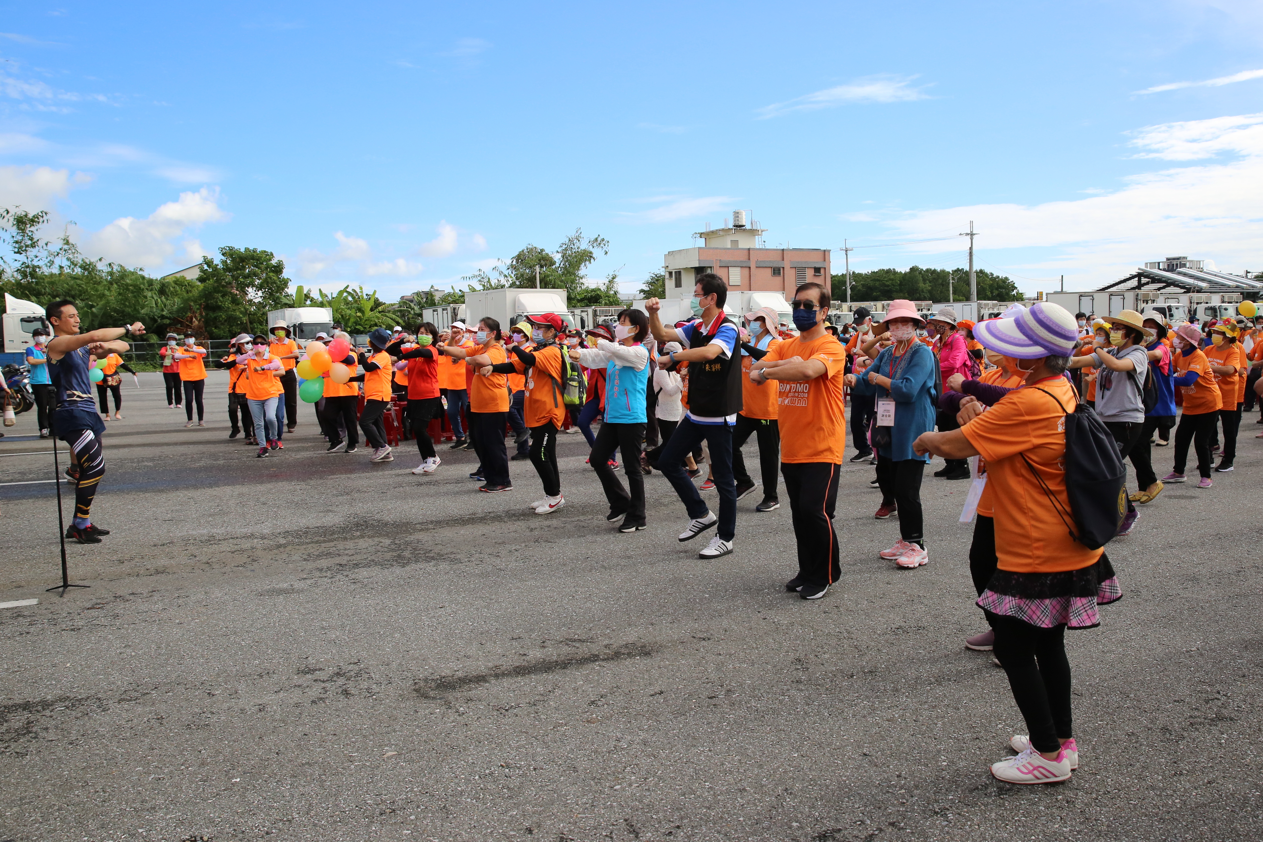 儘管前一天晚上吉安鄉大雨,但二十二日早上不僅晴天,還有涼涼的微風吹拂,八點半開始,來自二十一個失智社區服務據點、社區照顧C據點的長者開始在中央路與中山路廣場集合報到,花蓮縣衛生局局長朱家祥、吉安鄉鄉長游淑貞、鄉代會副主席黃金發也趕到廣場,為阿公嬤媽加油打氣,陪老人家做暖身操;花蓮慈濟醫院失智共照中心主任張幸齡、花蓮縣老人暨家庭關懷協會理事長楊傑與執行長蔡智全、富邦人壽經理曾美麗、慈科大長期照護研究所所長宋惠娟等人更是全程陪伴。