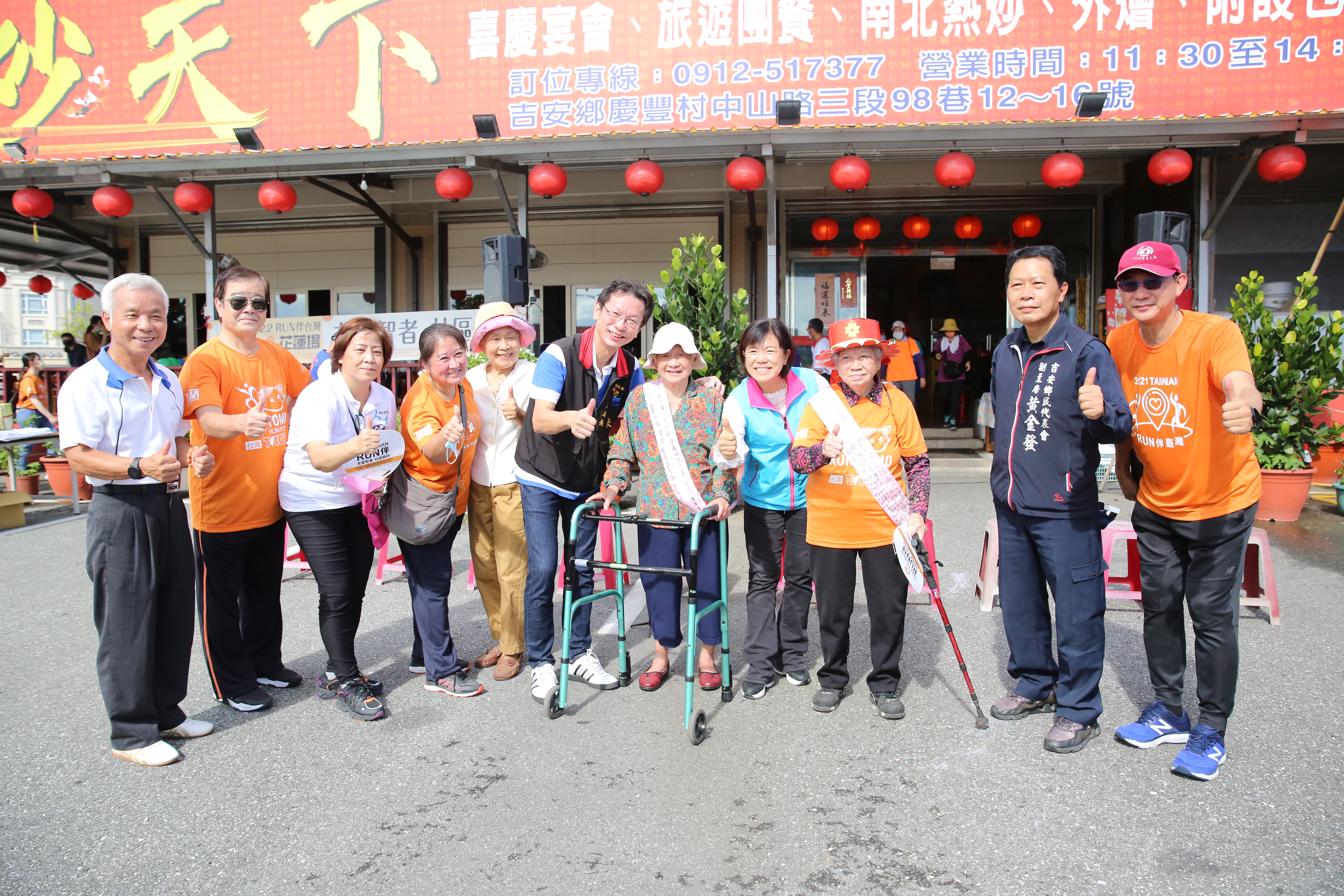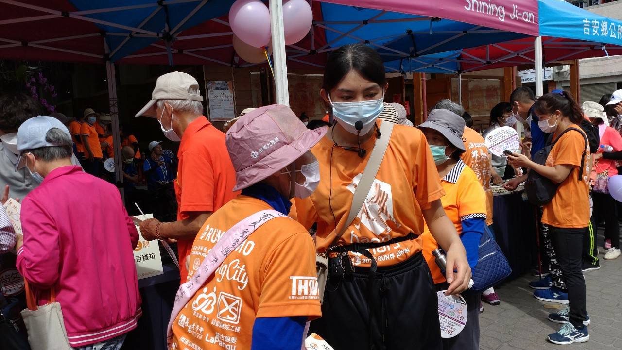 二○二二RUN伴台灣「友愛智者.社區相伴」活動十月二十二日在吉安鄉登場,三百多位長者在志工陪伴下,四百多人一路從中央路、中山路口走到好客藝術村,最高齡百歲人瑞謝蘭妹也推著助步車走一段;沿路還有鄉親搖氣球加油、供應點心和茶水。花蓮慈院失智共照中心團隊在好客藝術村入口設大腦篩檢創意闖關遊戲,並由失智個案管理師王可潔解說大腦篩檢結果,及保健諮詢。