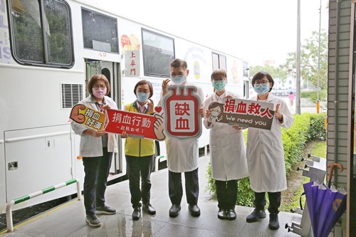 左圖:檢驗醫學科主任張淳淳(中),也帶領同仁來響應,並跟捐血站預約明年一月的醫檢師節將繼續響應這個熱血活動