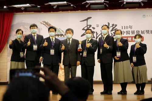 圖說:林欣榮院長也參與研發淨斯本草飲對抗COVID-19,推動中西醫合療與中醫藥研究的成果,獲得衛生福利部第一屆玉階獎表揚典禮上榮獲卓越貢獻獎。